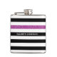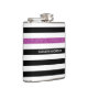 Modern Black Stripes FAUX Purple Glitz and Name Hip Flask