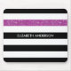 Modern Black Stripes FAUX Purple Glitz and Name Mouse Mat