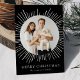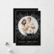 Stylish and modern holiday card featuring your photo nestled inside of a circular white sunburst frame. Personalise the sunburst Christmas card with your family name in white lettering on a black background or a colour of your choice. The back of the card displays the year and an additional photo.