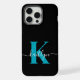 This simple, elegant black iPhone 15 Pro Max Case with your first name in a trendy script font in white typed over your first initial in a modern cap font in teal would look fabulous on your cell phone and will keep it protected from breakage. It's stylish and trendy and yet very classic.