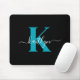 Modern Black Teal Script Monogram Mouse Mat