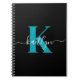 This simple, elegant black 6.5 x 8.75 spiral notebook with your first name in a trendy script font in white typed over your first initial in a modern cap font in teal is perfect for you. It's stylish and trendy and yet very classic. It will come in handy in so many situations. Perfect for work, home, school, journalling.