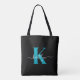 Modern Black Teal Script Monogram Tote Bag