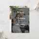 A modern and trendy double-sided all-in-one wedding invitation displaying your wedding information over one of your favourite pictures with a black transparent overlay accented by an elegant white script.
