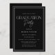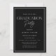 This is a modern college/university graduation party invitation using simple and timeless black and white typography and script text. Please contact the designer for any queries related to this design.