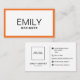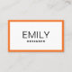 Design featured in Zazzle's Holiday Lookbook! Chic, stylish minimalist black typography on white background with a thin orange border frame gives a classic yet modern feel to this business card design template. Customise with your name and title on front and your contact info and logo on back. Matching marketing materials available in Small Business Tools Collection © MARISU PAPER CO