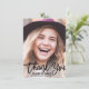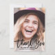 Send a minimalist custom photo graduation thank you card to your family and friends for their generous support. This simple and chic design features your picture on the front with an overlay of black script typography that reads "Thank You" with your name and year to personalise. The back of the card has a thank you message with signature to customise accented by a graduation cap. Congrats on your graduation! Designed by Susan Coffey.