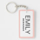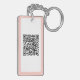Design featured in Zazzle's Holiday Lookbook! Chic, stylish minimalist black typography on white background with a thin pink border gives a classic yet modern feel to this business keychain template. A great marketing tool when you flip it over to share your QR code. Customise with info. Matching marketing materials available in Small Business Tools Collection © MARISU PAPER CO