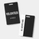Modern black volunteer badge in bold font with volunteer custom name. Perfect for events, groups, seminars, staff, trainee and crew.
