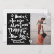 Here's to new adventures! Happy New Year 2022! In a modern fun hand lettered script calligraphy, add your photo , in black and white color.