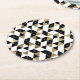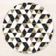 Modern Black, White, and Faux Gold Triangles Round Paper Coaster