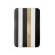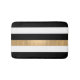 Chic bath mat done in a contemporary bold striped pattern, in black, white and gold tone. Matching bathroom products are available. Comes in three sizes.