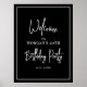 Simple Stylish Elegant Black and White Birthday Welcome Sign: