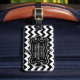 Add your first and last name, and contact details to create your personalised bag tag! Attention grabbing black and white zigzag chevron pattern will make your bag stand out from the rest at the baggage claim so you can be on your way quickly! The sophisticated doodle label graphic has three customizeable text fields that are just waiting to be made just for you! Get one for each member of your family so you can all have matching luggage bag tags!