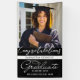 Celebrate your graduate in style with this modern black and white custom graduation banner, featuring their photo, name, and class year. Perfect for high school or college graduations, this elegant banner showcases a bold "Congratulations" design along with a graduation cap graphic. Made from durable, weather-resistant material, it's great for both indoor and outdoor celebrations. Display it at your graduation party, ceremony, or as a special keepsake to honour this milestone achievement.