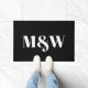 Modern black and white personalised custom couple monogram initials elegant chic Doormat