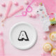 Modern Black and white personalised custom monogram initial letter cute fun party Paper Plates.