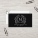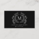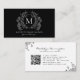 Modern Black White Floral Crest Monogram QR Code Business Card