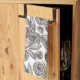 Modern Black White Floral Watercolor Pattern Tea Towel