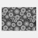 Sheet 1 & 3 (Abstract Floral-Geometric): These two sheets feature a high-contrast, modern, monochrome pattern with an intricate overlay of geometric and botanical forms. The design successfully marries Scandinavian simplicity with traditional folk art motifs through repeating radial starbursts and concentric circles. This bold graphic print offers a clean, dynamic, and timeless visual texture, ideal for admirers of contemporary Nordic design.