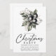 Modern Black & White Gold Christmas Wreath Floral Party Invitation