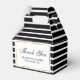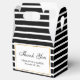 Modern black and white wedding favor boxes. Easily personalize these black and white striped wedding favor boxes with your event details.