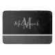Modern Black White Grey Striped Script Monogram Bath Mat
