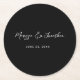 Modern Black White Hand Lettered Script Wedding Round Paper Coaster