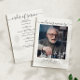 Elegant black and white funeral programs with handwritten script accents provide a modern yet timeless way to celebrate a loved one’s life. The front cover features a full-page photo tribute with “In Loving Memory,” name, and dates written in a graceful script paired with clean typography for a polished and personal look. The minimalist white background ensures the photo remains the focal point, creating a meaningful keepsake for family and friends. On the reverse side, the order of service is laid out clearly, including music, hymns, readings, and recessional details, offering guests an easy guide throughout the ceremony. The balance of simplicity and elegance makes this design versatile for funerals, memorials, or celebrations of life, while the handwritten-style script adds a warm, personal touch. Perfect as both a service guide and a treasured memento, this program captures love, remembrance, and dignity in a refined format.