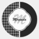 Modern Black White Houndstooth Monogram and Name Classic Round Sticker