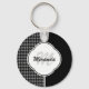 Modern Black White Houndstooth Monogram and Name Key Ring