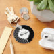 A modern black and white keychain with a houndstooth pattern in vertical stripes. Personalise this contemporary design in stylish shades of grey by adding the name and monogram initials of the fashionable young woman.