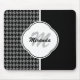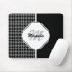 Modern Black White Houndstooth Monogram and Name Mouse Mat