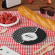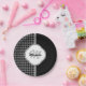 Modern black and white paper plates with a houndstooth pattern in vertical stripes. Personalise this contemporary design in stylish shades of grey by adding the name and monogram initials of the fashionable young woman.