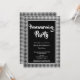 A modern black and white housewarming party invitation featuring a bold black and white diamond chequered border.
