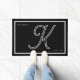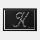 Modern Black White Monogram Script Family Name Doormat
