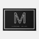 Modern Black White Monogram Script Family Name Doormat