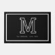 Modern Black White Monogram Script Family Name Doormat