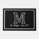 Modern Black White Monogram Script Family Name Doormat