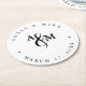 Modern Black & White Monogram Wedding Round Paper Coaster