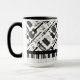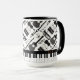 This beautiful combo mug with a black handle and interior features several key instruments including guitars, violins, drums, trombones, clarinets, trumpets, symbols and a keyboard!  The colours are striking in black and white you may choose any colour for the text.  Easily change the text to make it personal for a gift to yourself and your music-loving friends.  You may delete the text and keyboard to reveal a continuous pattern if desired.  © The Pattern Press.