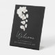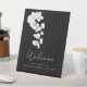 Modern Black White Orchids Floral Wedding Table Sign - Elegant Monochrome Botanical Design. Elevate your wedding celebration with our modern black-and-white wedding table sign featuring the timeless allure of white orchids. The minimalist design captures the elegance of these blooms, creating a sophisticated botanical masterpiece. With the addition of white script, these wedding signs exude a sense of refined beauty that perfectly complements the modern aesthetic. Share the beauty of your love story with family and friends through these elegant and captivating wedding table signs.
