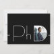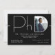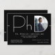 A modern photo PhD graduation party invitation with a black background and white lettering. Celebrate your being PhDone with this stylish invitation. Simply add your photo & information, add this invitation to your cart, and celebrate this major accomplishment.