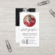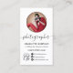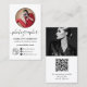 Modern Black white photo qr code logo photographer business card. Add 2 photos, your logo, social media and qr code to show your price list, appointment, portfolio and more!. Simple black and white with a circle photo mask and an elegant modern script brush typography,