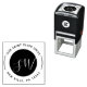 Modern simple black and white round monogram script self-inking stamp. Customise this stamp with your name and text.