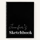 Modern Black White Script Personalised Sketchbook Notebook