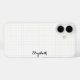 Create your own custom, personalised, beautiful elegant stylish black typography script name monogram / initials, monogrammed, cool, chic, stylish, modern squares lines classic pattern background, trendy, sleek, form-fitting, featherlight, trendy, slim profile, lightweight, impact resistant, durable hard plastic, glossy finish Apple iPhone case. To customise, simply type in your name / monogram / initials. While you add / design, you'll be able to see a preview of your creation, throughout. A custom iPhone case, makes a great gift for birthday, graduation, back to school, fathers day, mothers day, christmas, holidays, wedding, marriage anniversary, valentines day, office, school, university, college, business, and more, for your loved ones, kids, mum, dad, wife, husband, girlfriend, boyfriend, grandparents, grandma, grandpa, bride, groom, newlyweds, students, employee, staff, family and friends.