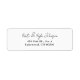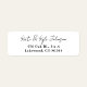 Stylish return address label in black script and serif fonts paired on a white background.