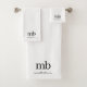 Modern Black White Trendy Script Initial Monogram Bath Towel Set