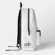 Modern Black White Trendy Script Initial Monogram Printed Backpack